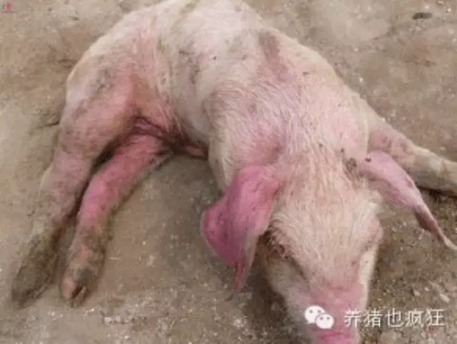 急性病例主要表现为败血症的变化。死猪体表皮肤淡蓝色或淡紫色,或见紫红色斑块。淋巴结肿大,呈紫红色,切面外观似大理石状,与猪瘟的变化相似。脾脏不同程度的肿大,呈暗紫色,切面蓝红色。肝、肾、心外膜见有出血点。胃肠黏膜红肿,上附黏液,可见出血点,重者呈弥漫性出血。肺有卡他性炎症变化。病程稍长的病例,大肠黏膜有散在的麸皮状的坏死物。