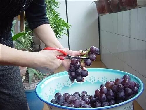 把葡萄从贴近果蒂的地方剪下来,注意不要伤到果皮。