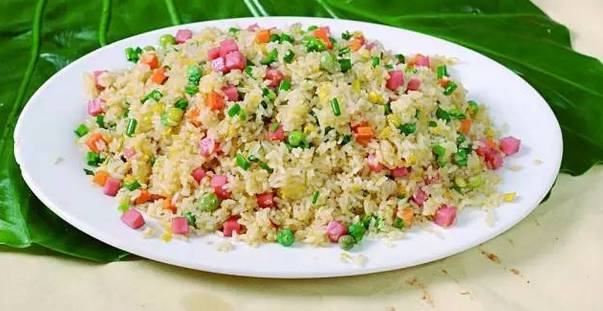 扬州炒饭又名扬州蛋炒饭,相传源自隋朝越国公杨素爱吃的碎金饭,即蛋炒饭。隋炀帝巡视江都(今扬州)时,将蛋炒饭传入扬州,后经过历代烹饪高手的逐步创新,揉进淮扬菜肴的“选料严谨,制作精细,加工讲究,注重配色,源汁源味”的特色,终于发展成为具淮扬风味有名的主食之一。 扬州炒饭的名气遍及世界很多国家,据国外来的朋友讲,许多外国人都喜欢吃扬州炒饭,却不知道扬州是怎么一回事,在他们的头脑中扬州并不是地名,而误认为是这种炒饭的做法。扬州炒饭的品种丰富,有“金裹银”、“什锦蛋炒饭”及“青菜炒饭”等。