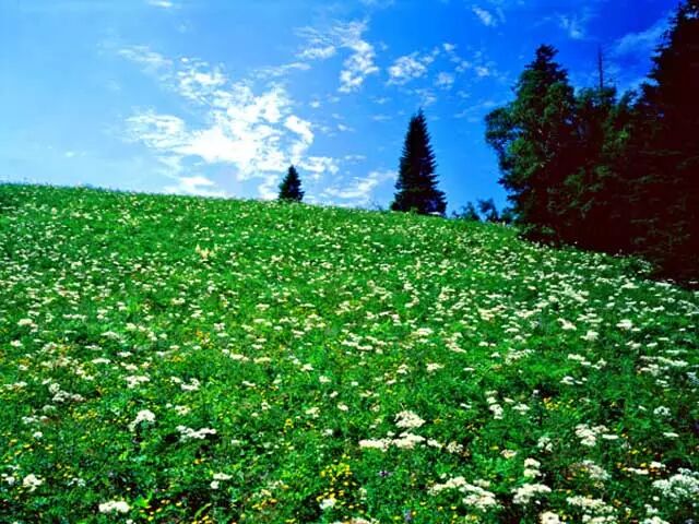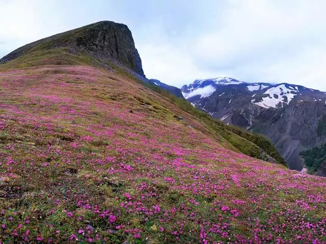 每年6月9月,从海拔500米以上的阔叶林带开始,在山坡、林下、谷地、河边的鸢尾、百合、大花萱草、金莲花、塘松草、藜芦花等数百种高山花卉竞相开放,点缀着长白山麓,放眼望去,漫山遍野姹紫嫣红,一派生机。高山花卉从分布在海拔最高的高山苔原带上的杜鹃园开始,各色鲜花交织在一起,高低错落,相互交融,犹如人间仙境。高山花园规模之宏大,景色之壮丽,堪称“空中花园”“天堂花园”,被誉为“天使散步的地方”。