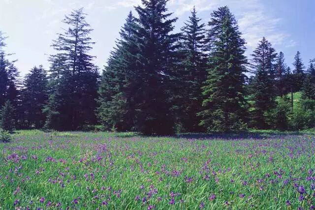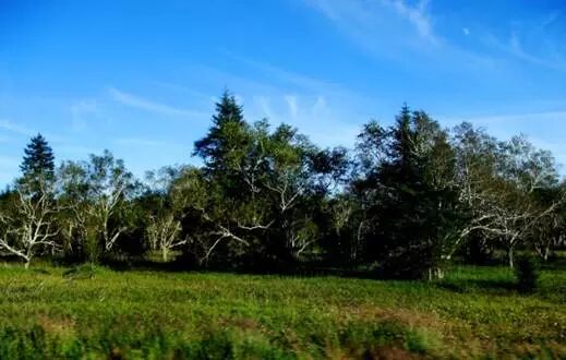 在长白山西坡如地毯般铺展开去的草地上,常常可见松树和桦树两两相依的动人情景:松树高大挺拔,象一位伟岸的男子;桦树枝叶舒展,体态婀娜,似一个妩媚的俏佳人。它们如同一对对情人在长白山幽会,又像在举行盛大的集体婚礼,这就是长白山的“松桦恋”景观。
