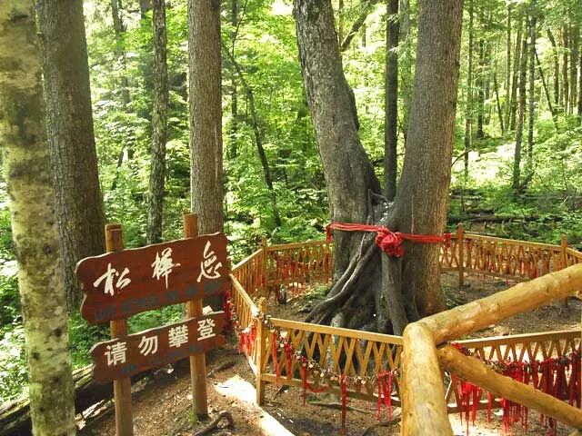 这种奇观位于海拔约两千米的高山地带,是针叶林带与岳桦林带的自然分界处。分属于两个植被带上的代表性植物松树和桦树,在这里就像感情笃深的恋人一样, 两两依偎,根连根,枝攀枝,共生共长。
