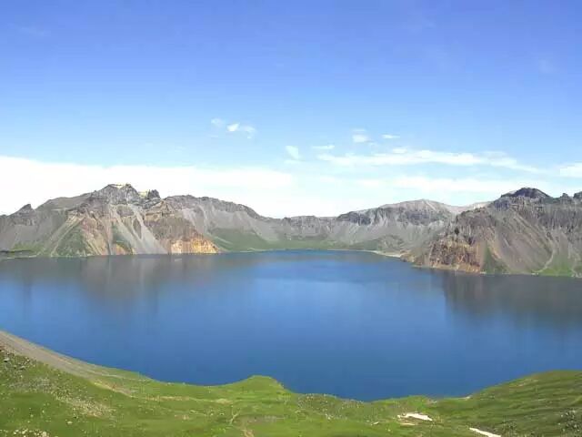 长白山天池位于长白山主峰火山锥体的顶部,像一颗璀璨的明珠,镶嵌在雄伟壮丽的长白山主峰的群峰之中,她形似落叶,略呈椭圆形,是火山喷发后自然形成的火山口湖。站在悬雪崖上还可以看到7峰16景,因而观日出成为很多旅游爱好者的“最爱”之一。