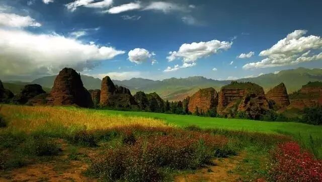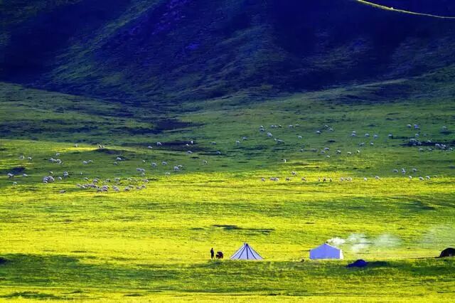 这里人口稀少,仅有4000余牧民,但是幅员辽阔,草原面积达70平方公里,每到夏天,蓝天白云,绿草如茵,野花遍地,牛羊成群,非常漂亮!还在前往桑科草原的路上,便已能欣赏这沁人心脾的草原美景!