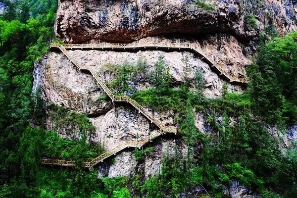 如果你是扶墙族,不妨也沿着高耸的崖壁悬梯而上,在这空旷雄壮的美景中感受步步惊心的刺激~