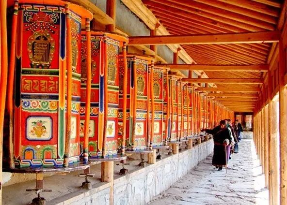 拉卜楞寺外墙由2000多个转经筒组成,是世界上最长的转经廊,转完一圈并触摸到每个转经筒至少需要一个多小时,而转经者通常最少转三圈,当然能转九圈的人也很多,天没亮就开始起来转经。转经筒一定要顺时针用右手转,转经廊也要顺时针方向走。