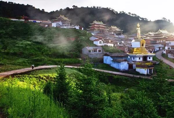 在高原阳光照射下熠熠生辉的寺庙金顶和镇里闲适的僧俗众,使得小镇神秘而又充满生活气息。