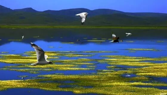 这里也是观鸟圣地,每年夏天(6至9月),成群的白天鹅、灰雁等近百种鸟类会从南方飞来尕海,它们时而空中盘旋,时而掠过水面,轻落于草甸,一起一落间,身姿舒展优美,引得无数摄影师前来拍摄。