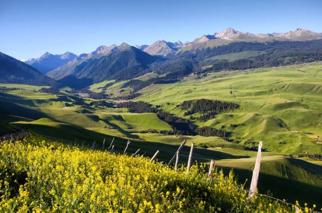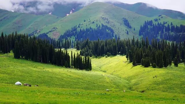 那拉提草原的最佳旅行季节为6-9 月,此时的草原一片碧绿,还有野花盛开,而且气候适宜。