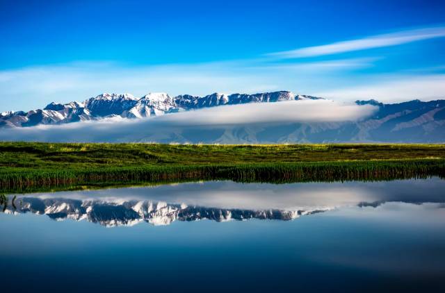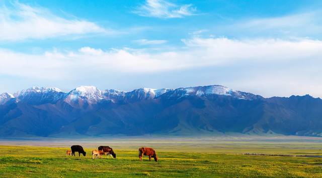 赛里木湖的最佳游玩季节是每年的六七月份,此时湖边草原上开满了各色的野花,应照着雪山下的蔚蓝湖水,是不可错过的盛景。