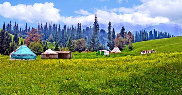 每年6月之后,大群的牲畜转入,进入草原的黄金季节,草原人的各种集会多在此举行。当地还可体会哈萨克民俗风情。