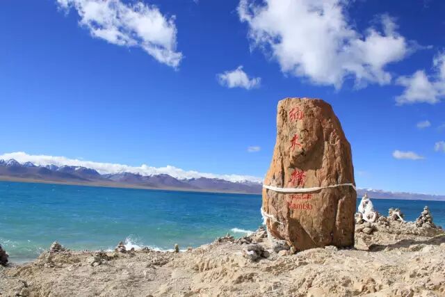 “纳木错”意为天湖、灵湖或神湖,湖中五个岛屿兀立于万顷碧波之中,佛教徒们传说他们是五方佛的化身,凡去神湖朝佛敬香者,都会虔诚地顶礼膜拜。