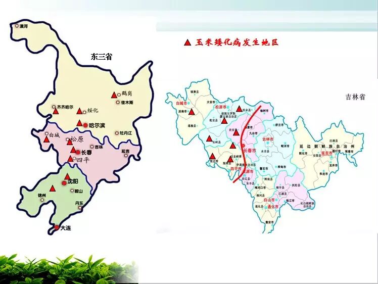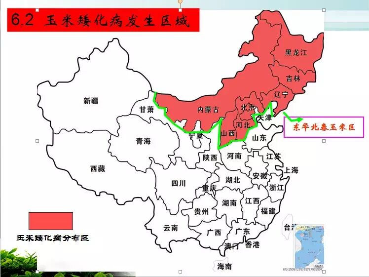 整个东北地区的西北部偏碱性沙壤土区域是玉米矮化病大面积发生的区域。