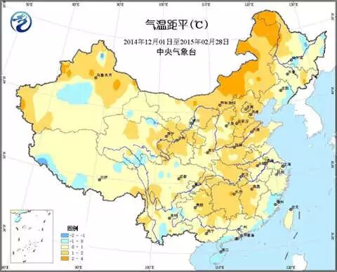 2014/2015年冬季平均气温距平