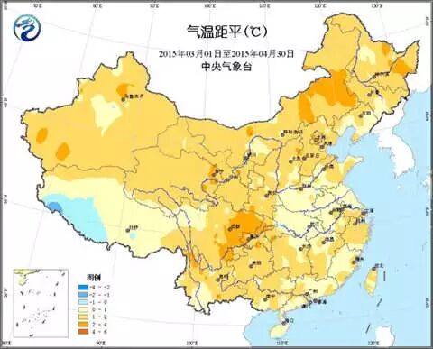 2015年3-4月平均气温距平