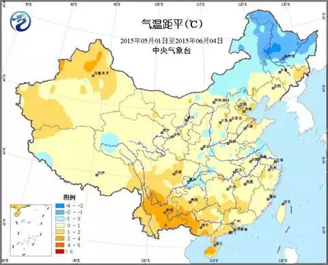 2015年5月1日至6月4日平均气温距平