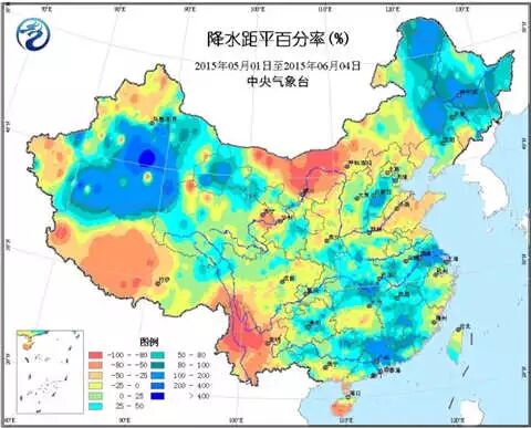 2015年5月1日至6月4日降水距平百分率