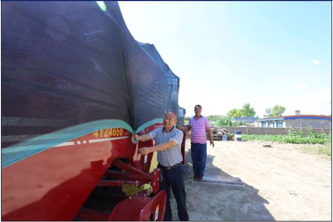 在高书国种植合作社,记者见到一台勇猛玉米收获机身披遮阳网,轮穿塑料衣,像是战场上被伪装的武器,记者也算见过点世面,但这么武装机械的还是第一次见到。理事长高书国介绍,这是因为还不到收获的季节,合作社的场库棚还没建好,“要想在收获季节让机子好好干活,平时就得照顾好它。”