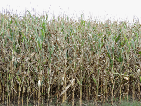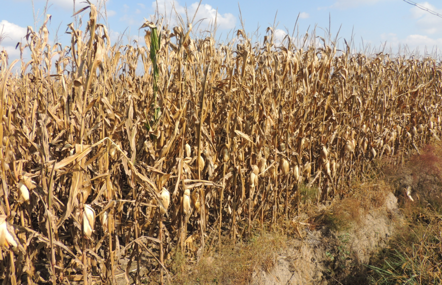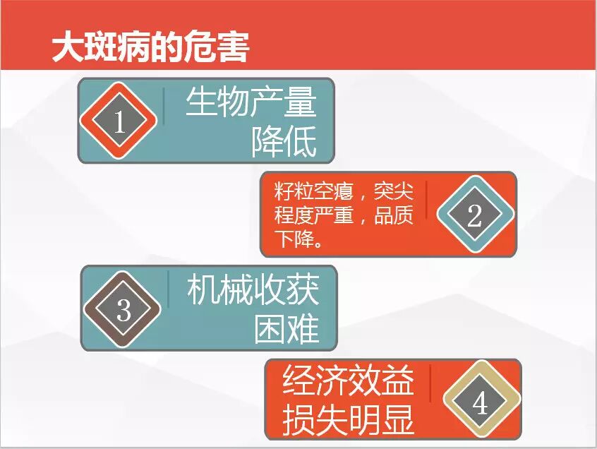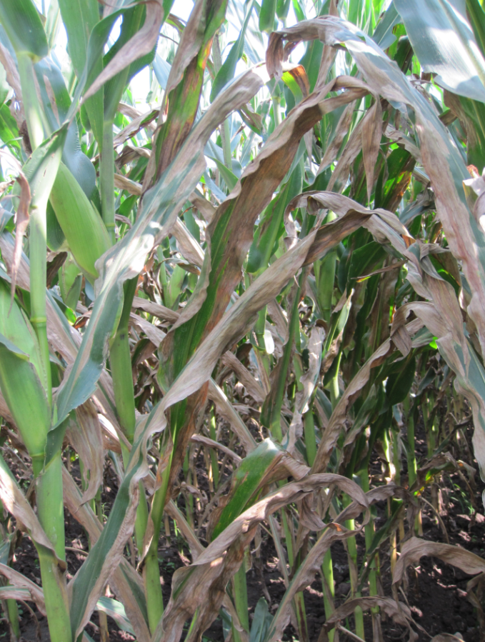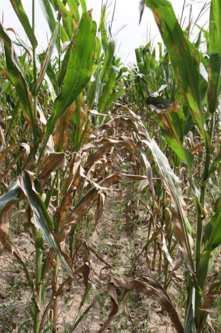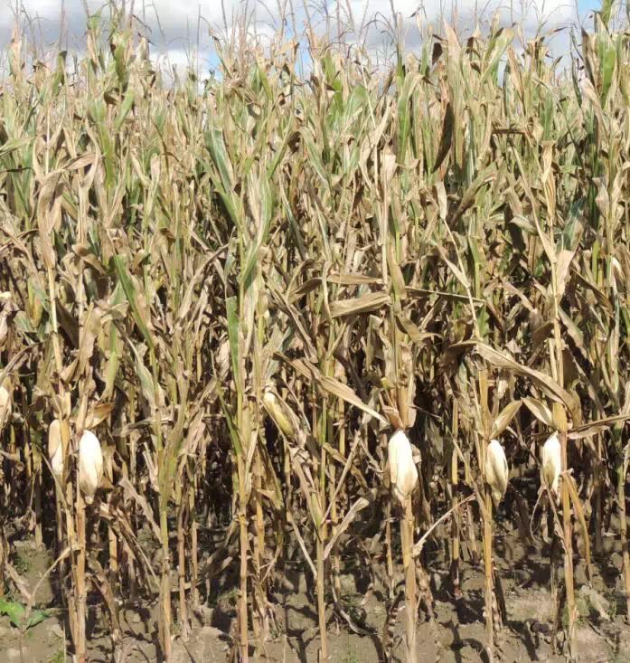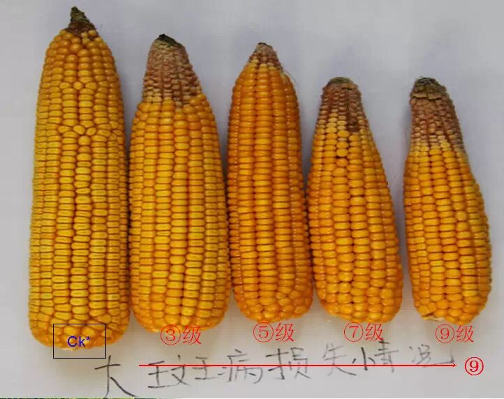 到收获时,感大斑病的品种基本上叶片全部萎蔫枯死,果穗突尖严重、畸形,籽粒空瘪、品质下降。