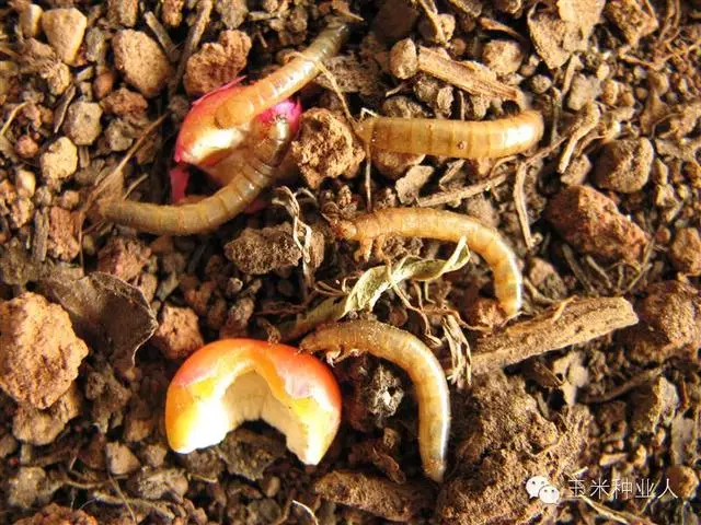 1、用40%毒死蜱100倍液或防地下害虫种衣剂进行拌种。 2、耕翻土壤,减少土壤中幼虫存活数量。发生严重时可浇水迫使害虫垂直移动到土壤深层,减轻为害。 3、苗期可用40%的毒死蜱1500倍或40%的辛硫磷500倍与适量炒熟的麦麸或豆饼混合制成毒饵,于傍晚顺垄撒入玉米基部,利用地下害虫昼伏夜出的习性,即可将其杀死。