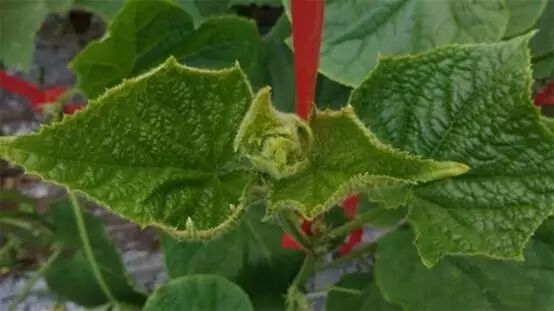 刘老师介绍,近段时间,不少菜农反映黄瓜出现烂头现象,表现为黄瓜新叶干边,这是缺钙导致的。钙元素在植株体内不易传导,二次利用率很低,所以缺钙首先从新叶表现出来。