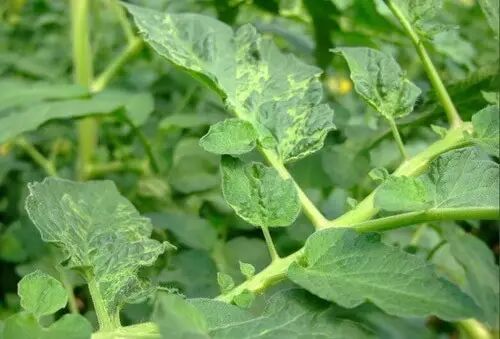 对于已经表现出病毒病症状的植株,建议及时拔除发病植株,重新补苗或邻近植株多留侧枝等解决。生产中要注意培育壮棵,增强植株抗病性。另外,要注意勤用药,常用药剂有病毒A、菌毒清、宁南霉素、氨基寡糖素等。