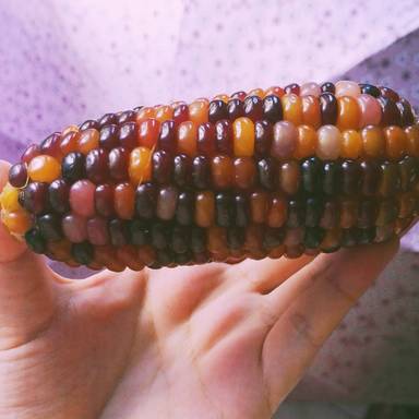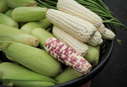 紫玉米中多了花青素,因而具有抗氧化、防衰老的功效。 黄色玉米含有胡萝卜素和玉米黄素,对于维持视力健康有好处。 飞花玉米:又叫彩色玉米。玉米是异花传粉的植物,靠风来传粉,在自然情况下,很容易互相之间进行杂交,结出各种颜色的籽粒来,这样的玉米也可以放心吃的! 颜色像黄金,玉米的功效也如黄金一样金贵哦!每天吃上几十颗玉米粒,可以有效均衡体内的营养摄入~赶紧把这一盆“黄金”摆上你家的餐桌吧!