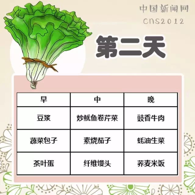 1. 早餐 主食:高纤维馒头或饼等高纤维主食。 副食:①煮鸡蛋或茶叶蛋一个;②淡豆浆、脱脂牛奶可任选一种;③凉拌蔬菜。 2. 午餐/晚餐 主食:高纤维大米饭、高纤维馒头、高纤维面条或其它高纤维主食。 副食:①瘦肉、鱼、鸡、鸭可根据情况选择;②清炒蔬菜、凉拌蔬菜、豆制品等。