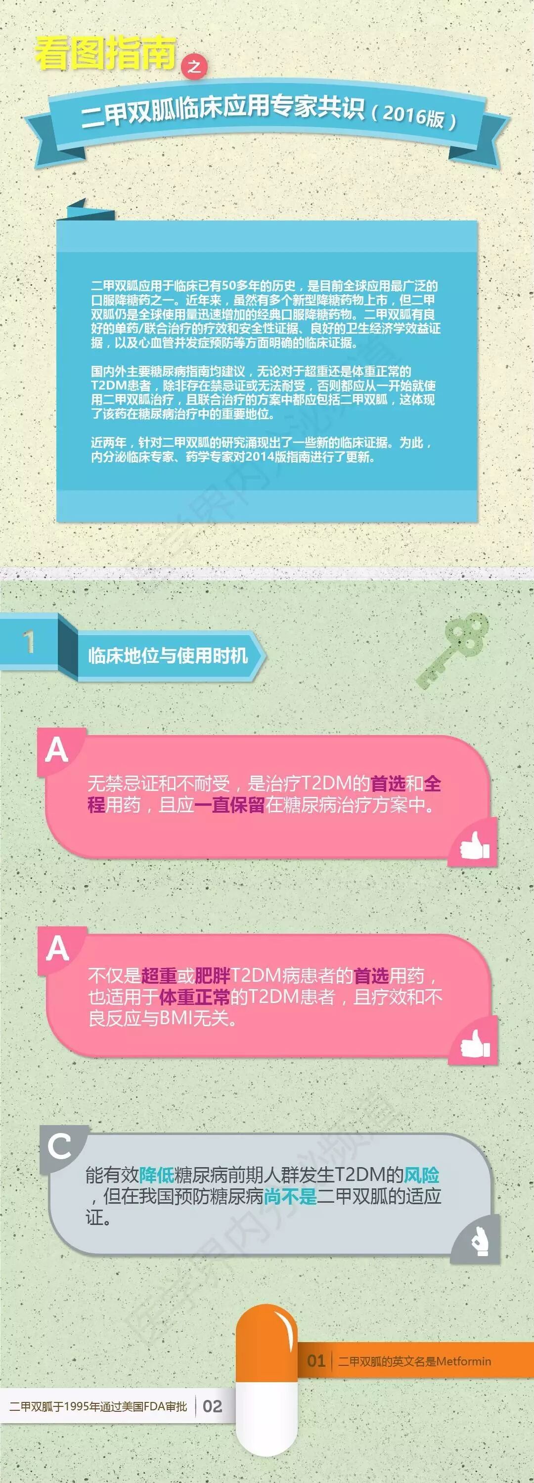 「看图读指南」系列:《二甲双胍临床应用专家共识(2016版)》刚刚发布,如果文字版看得太累,这里一张图帮您读懂!
