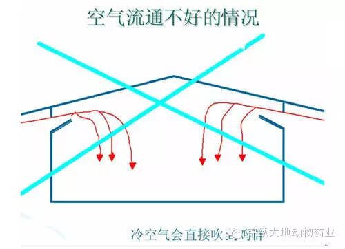 3、通风管内冷空气进入鸡舍一定要和鸡舍上方的热空气混合后再缓慢落下,落下后接触鸡的空气温度要满足该日龄所需正常温度,不要低于该日龄所需正常温度,避免冷风吹鸡,造成冷应激。