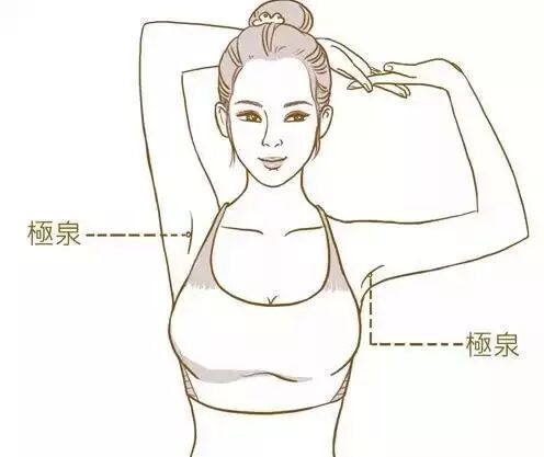 腋窝的极泉穴是心经的重要穴位,可以去心脏的郁火毒素,应常常去按揉,以疏通这口井。