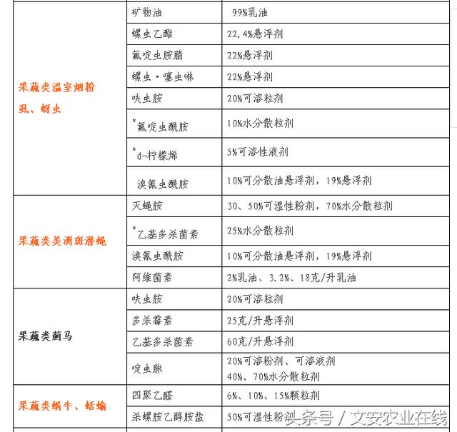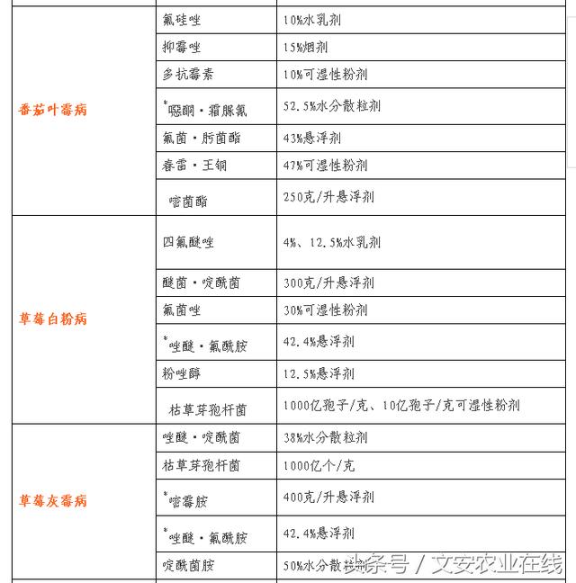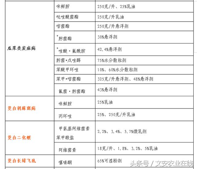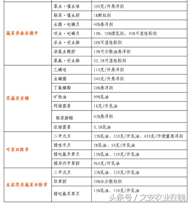 蔬菜、瓜果病虫草害防治药剂名单