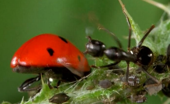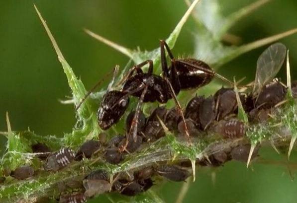 有趣的是,蚂蚁不仅会“挤奶”,尽情享用这美味食品,还会饲养和放牧蚜虫。它们成了昆虫王国的放牧人。