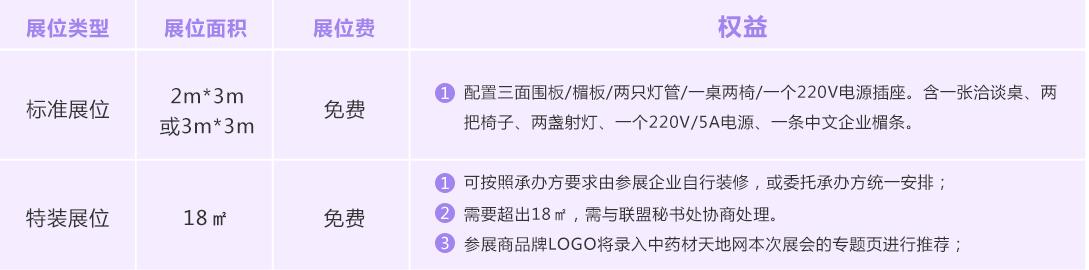 1、标准展位:每个展位为3米×3米或2米×3米(根据位置不同定),承办方为每个联盟单位免费提供1个标准展位。非盟员单位如参展,可咨询展览事务联系人,详细了解费用及展位情况;